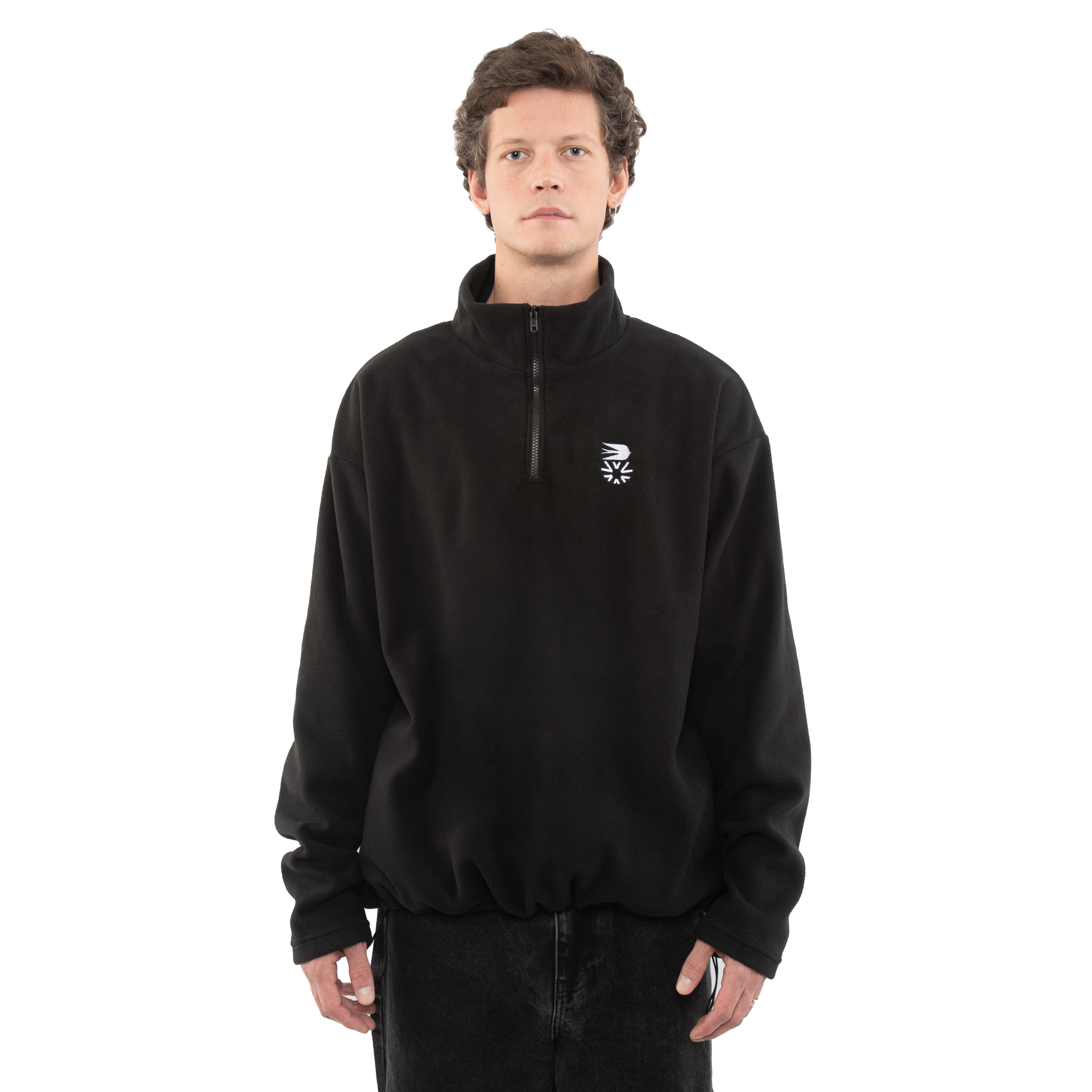 Теплая оверсайз-толстовка с молнией на воротнике. Спереди добавили отличительную эмблему новой коллекции, которая напоминает герб. В нем можно разглядеть арктическую крачку, солнце и наш логотип. А сзади — логотип Силы ветра.
