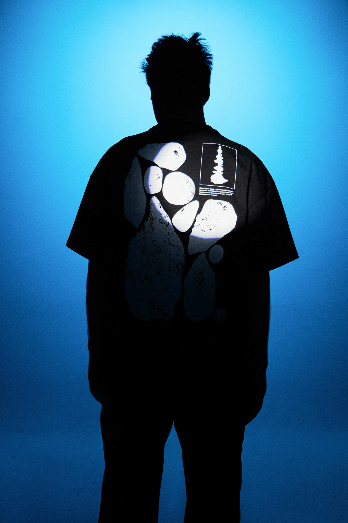 Оверсайз-футболка из 100% плотного хлопка с гурием на спине — чтобы вы всегда помнили о внутреннем балансе.